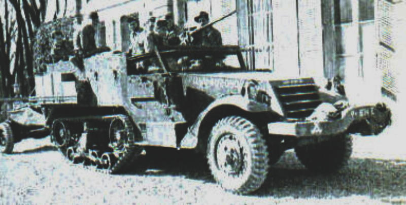 Half track in Normandy. Laying mesh tracking above Omaha beach for the first allied airfield